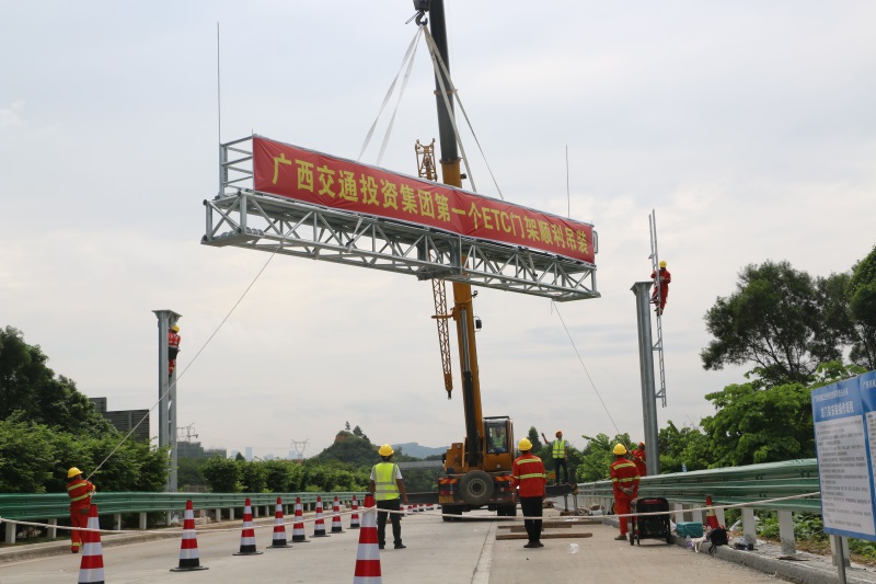 廣西交通投資集團第一個ETC門架順利吊裝